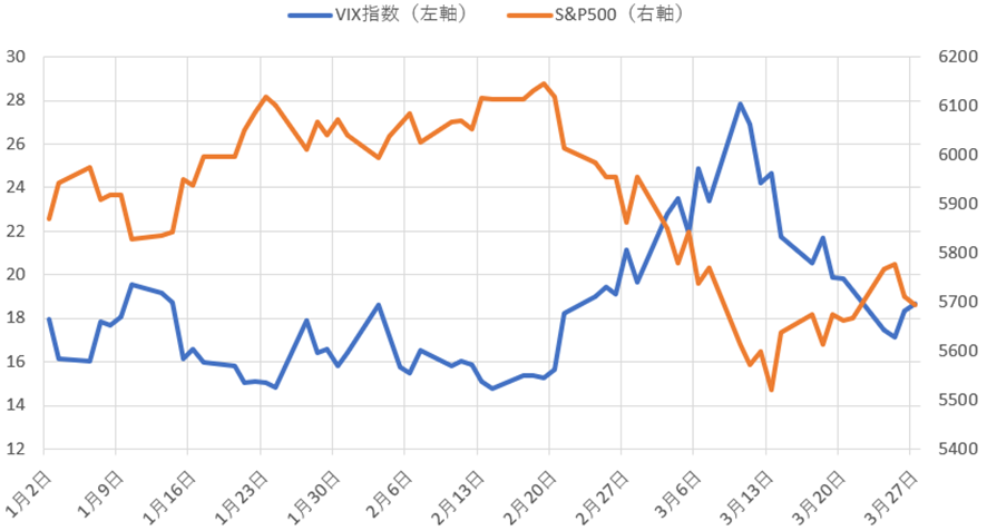 VIX指数とS&P500の年初来推移(いずれも日足)