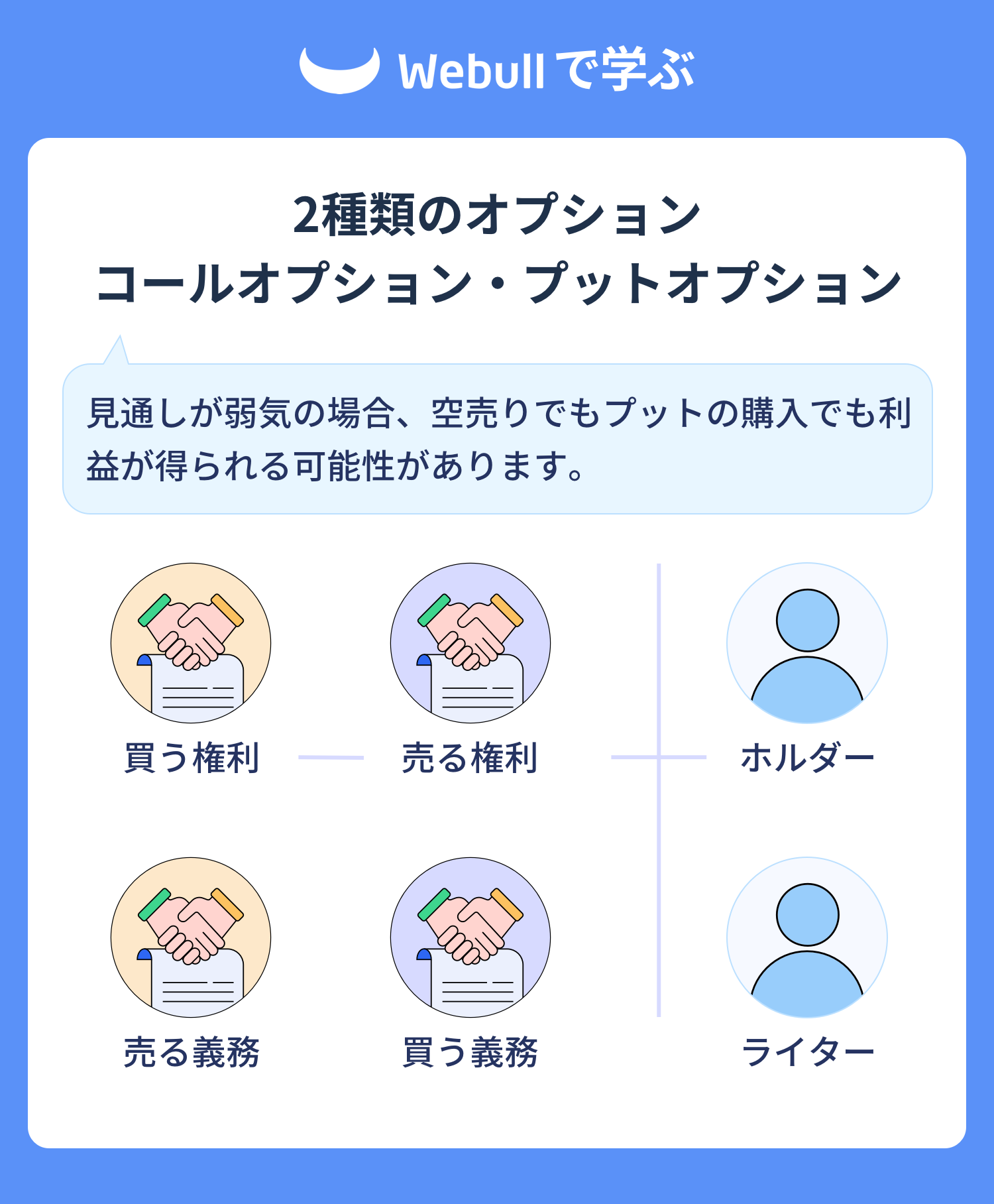 オプションとは、契約のオーナーに、特定の期日までに合意した価格で原資産を売買する権利を与えることです。
