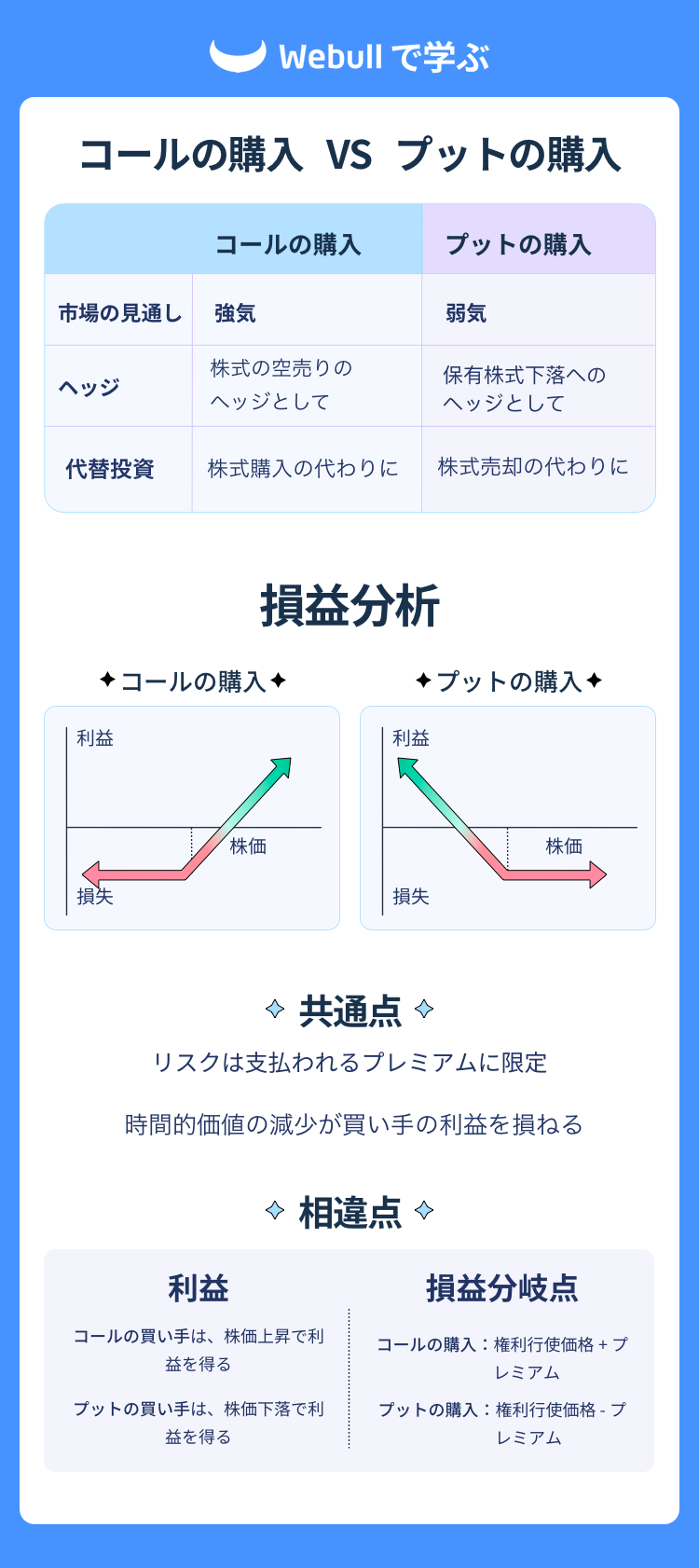 ここでは、コールとプットの購入について比較します。
